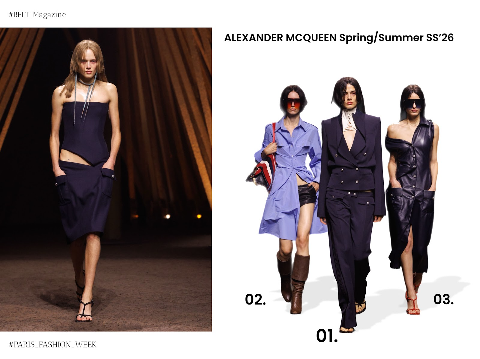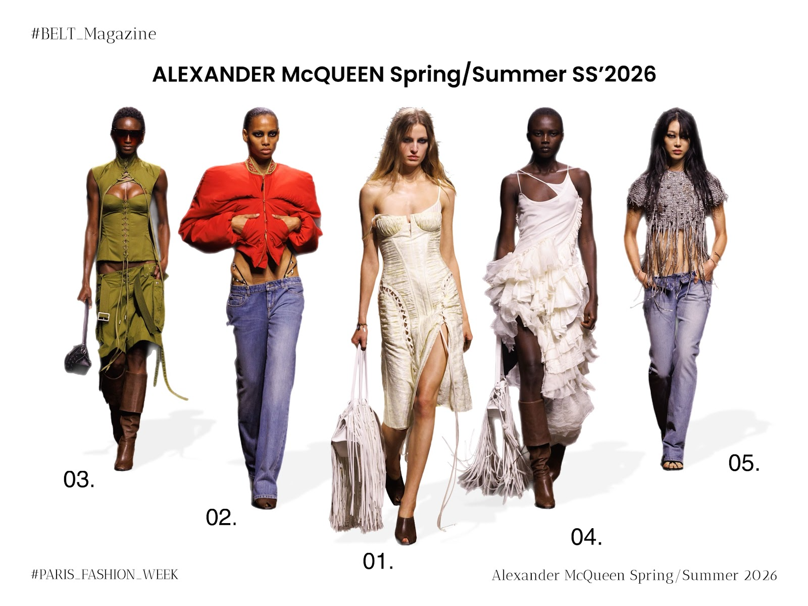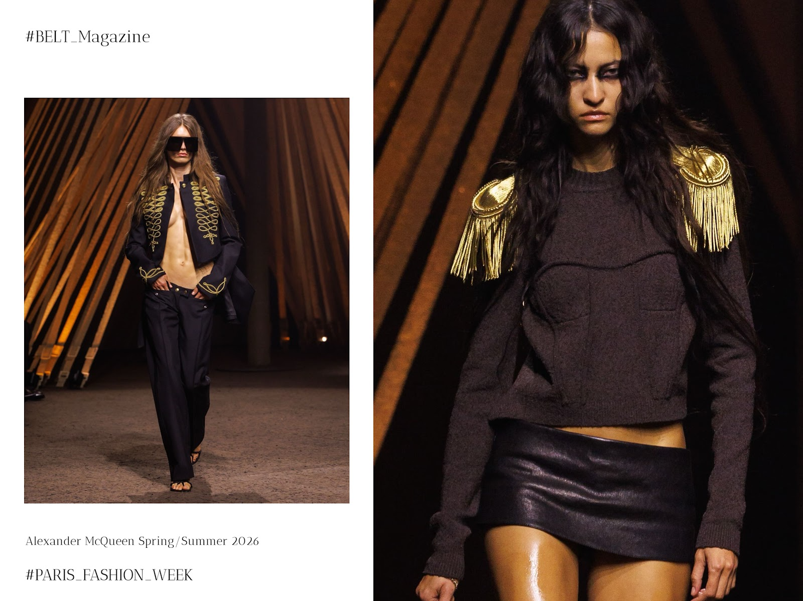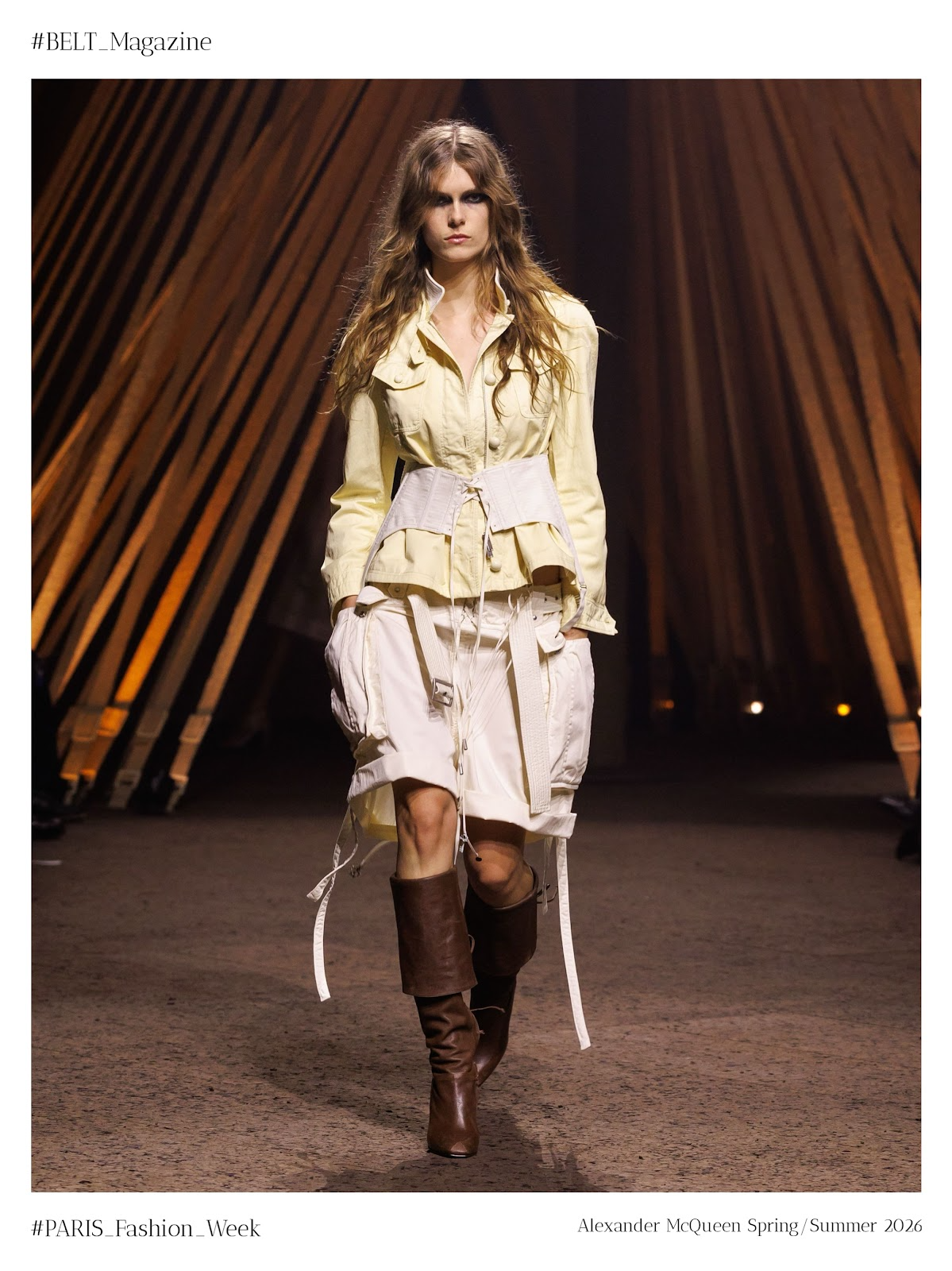 В зале — напряжённый воздух, словно перед грозой. Шон МакГир , креативный директор бренда Alexander McQueen представил коллекцию весна/лето 2026 и предложил нам диалог между инстинктом и дисциплиной: «Мы сдерживаем природу во имя порядка. А что, если уступить ей?»
