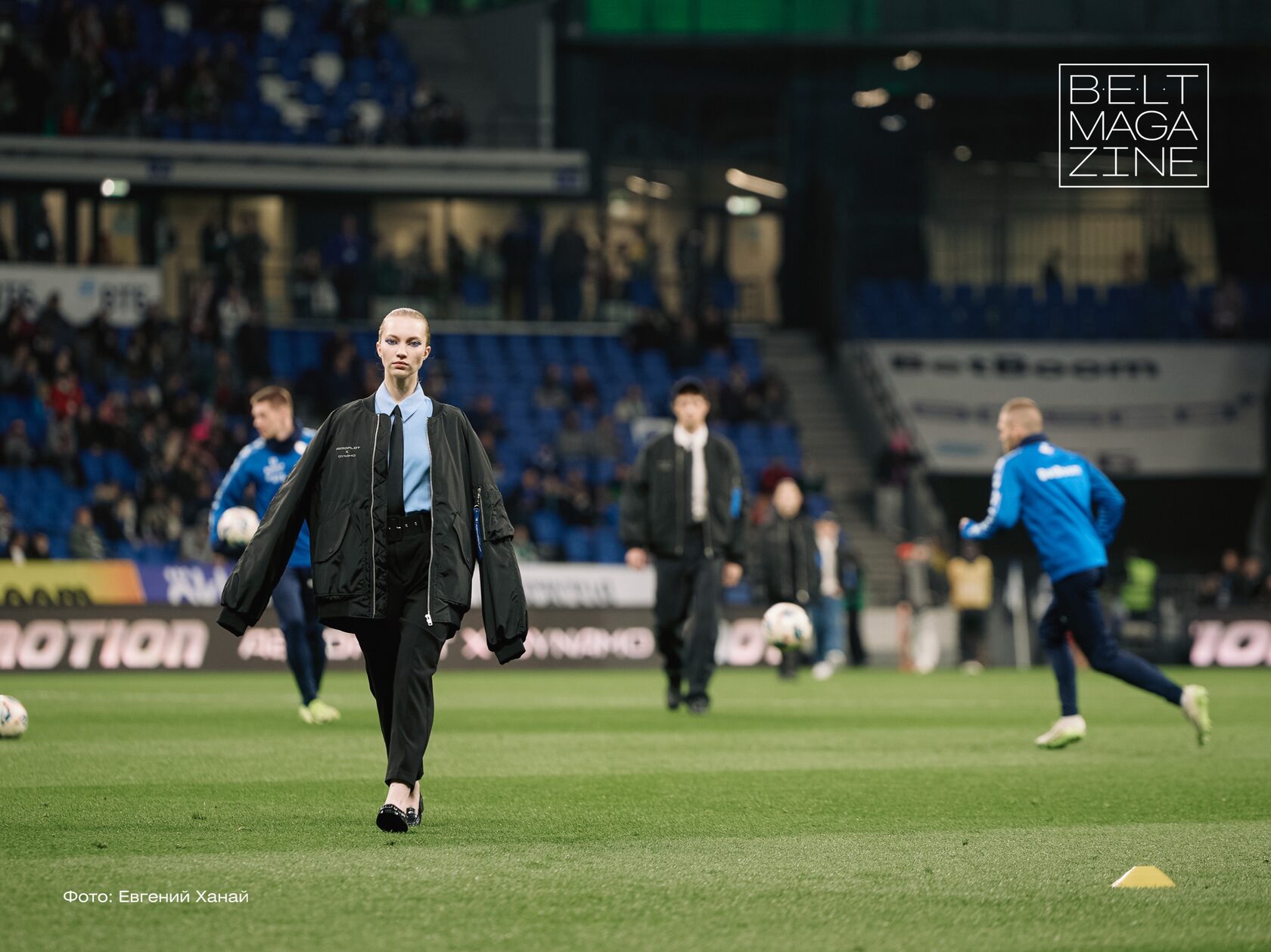 Слияние спорта и моды ощущается буквально: модели идут по полю, словно по масштабному подиум, где разносятся тени зрителей, шум стадиона — всё работает на концепцию "модного матча". Идея показа на футбольном поле подчеркивает основной посыл коллекции Motion: жажда движения – это то, что объединяет "Динамо" и "Аэрофлот", а также всех тех, кто ценит активный образ жизни и всегда готов к новым вызовам.