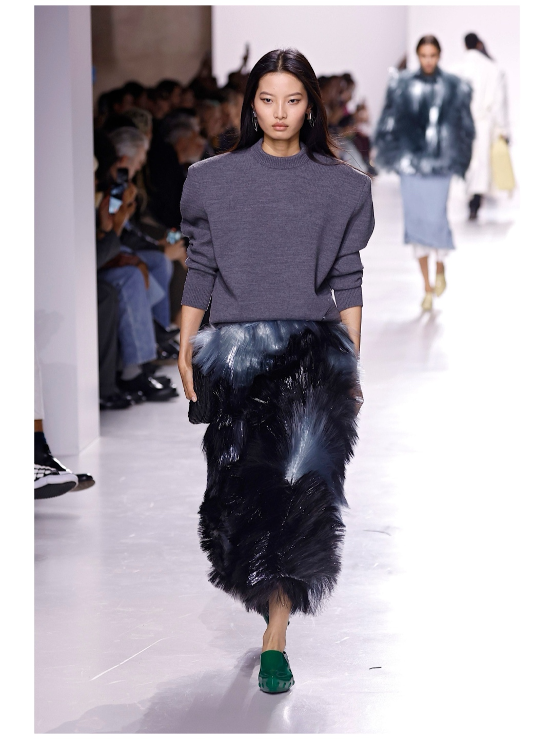 Так например в коллекции появляются яркие пушистые топы и юбки, созданные из переработанного стекловолокна. Они привлекли внимание многих и добавили яркого акцента в коллекцию.