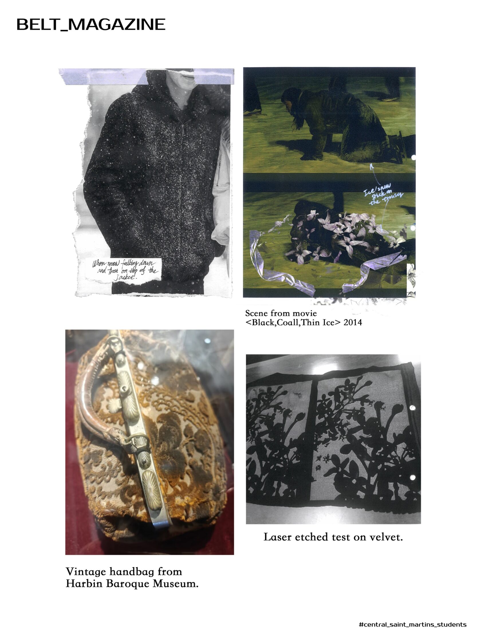 Цветовая палитра этого образа была вдохновлена фильмом, который однажды посмотрела дизайнер — «Черный уголь, тонкий лед». Фильм рассказывает о деле об убийстве, произошедшем в Харбине в 1999 году.
