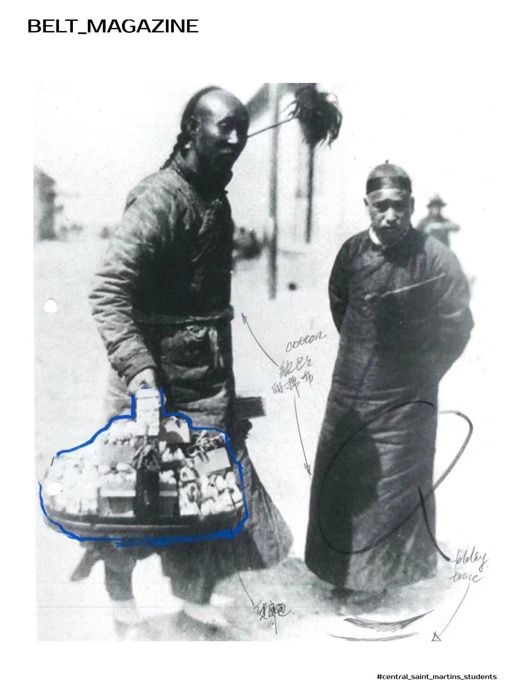 «Также я вдохновлялась уличными торговцами того времени. Это были мужчины, одетые в тяжёлые халаты, с кожаными сумками, наполненными всевозможными товарами, которые они несли по улицам и переулкам Харбина. Даже для тех, кто не знаком с Харбином или той эпохой этот образ всё равно сможет вызвать ощущение атмосферы и ностальгии».