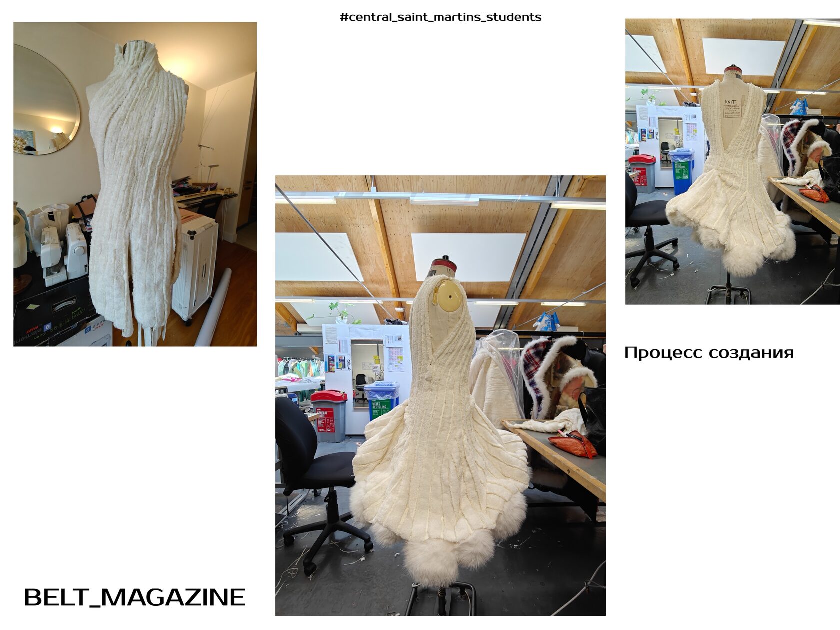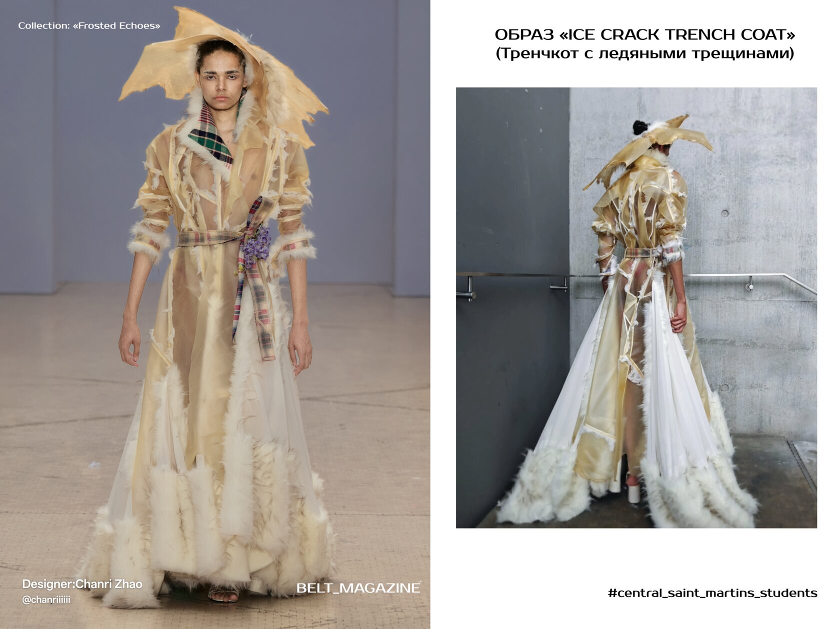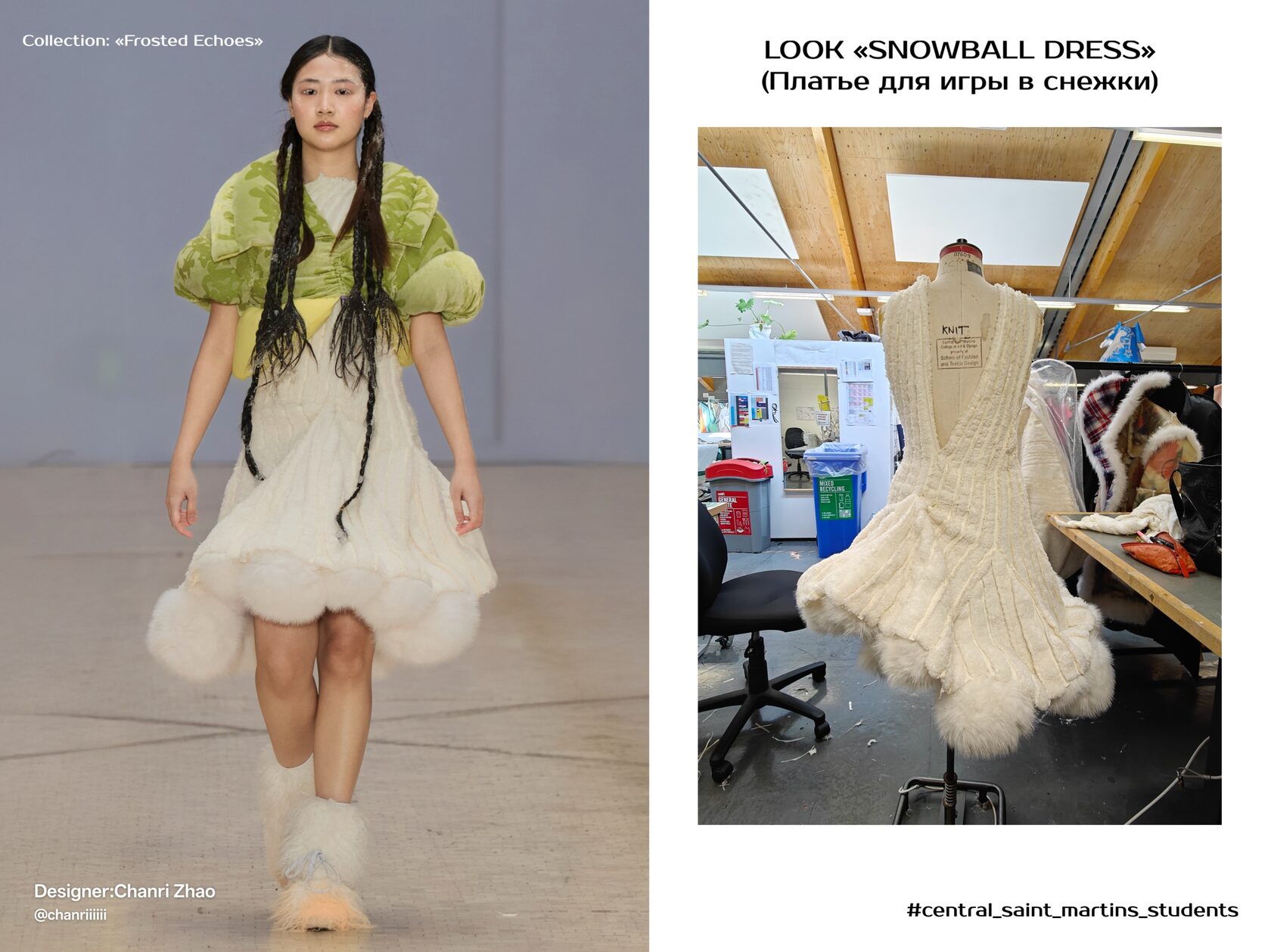 Недавно она представила свою выпускную коллекцию под названием “Замороженное эхо”. И, действительно, если мы посмотрим на образы, то долю “ледяной” и “морозной” эстетики мы заметим.