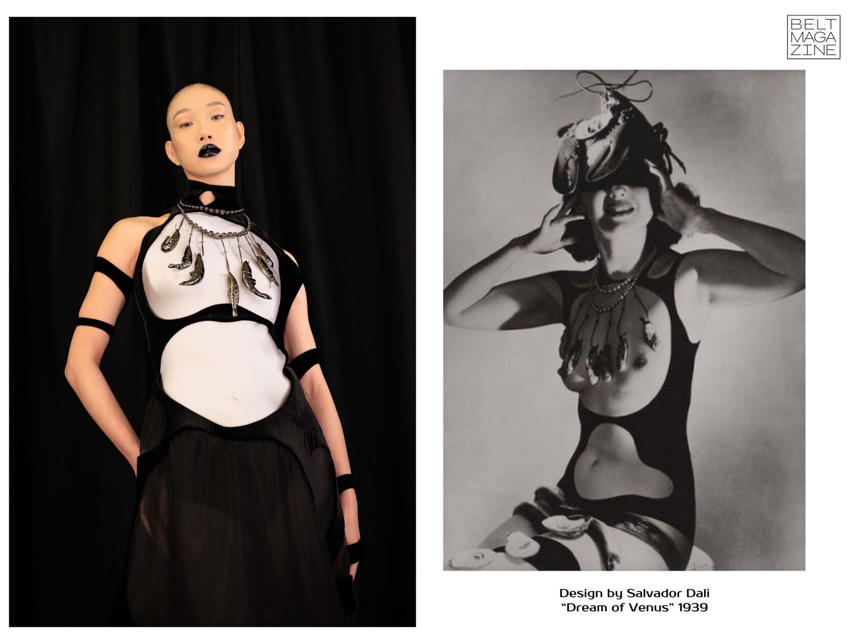 На кадре можно увидеть фотоэксперименты Сальвадора Дали и фотохудожника Хорста П. Хорста (Horst P. Horst), 1939 год. Дэниел Розберри в буквальном смысле превратил фотографию в платье.