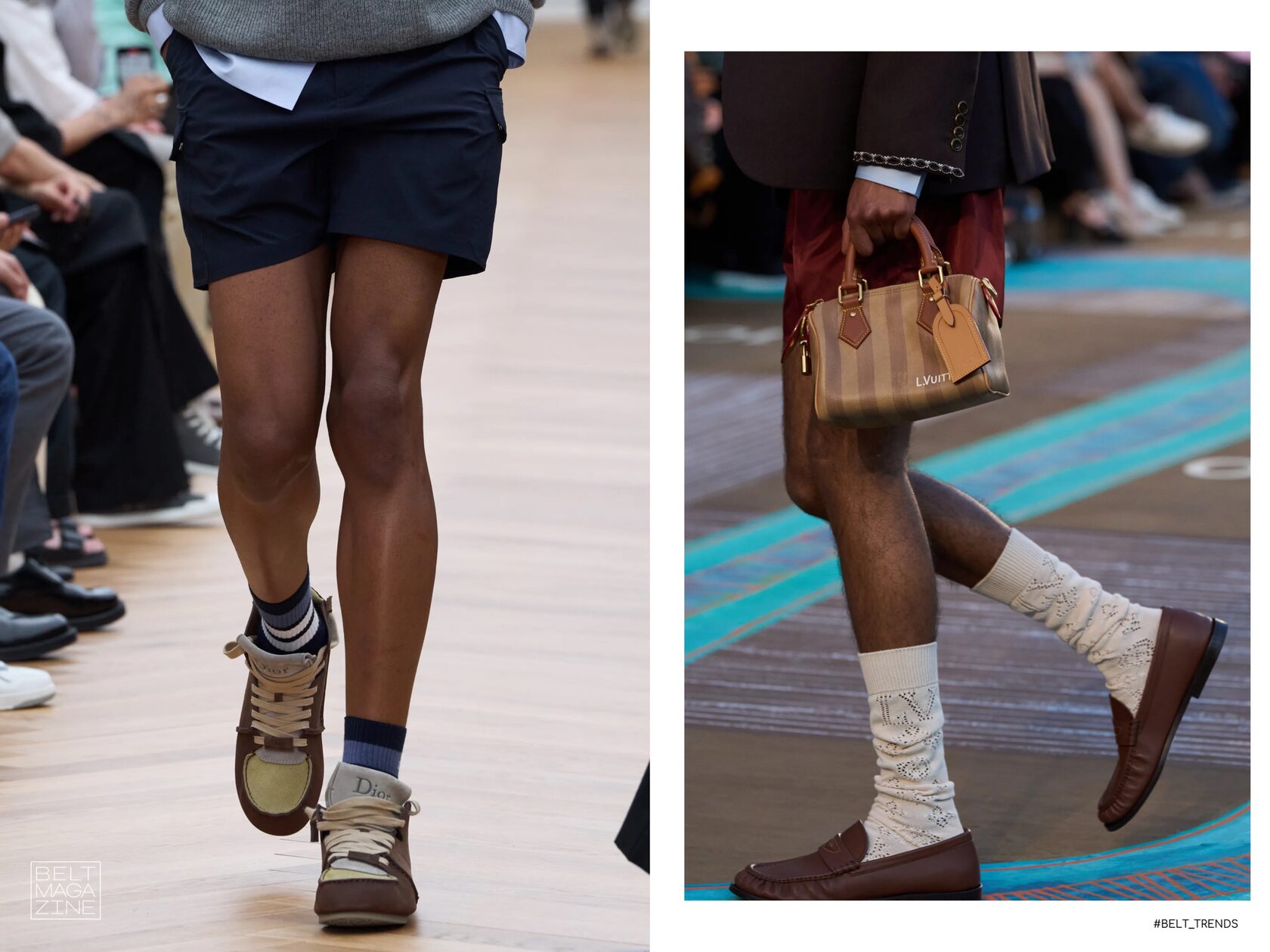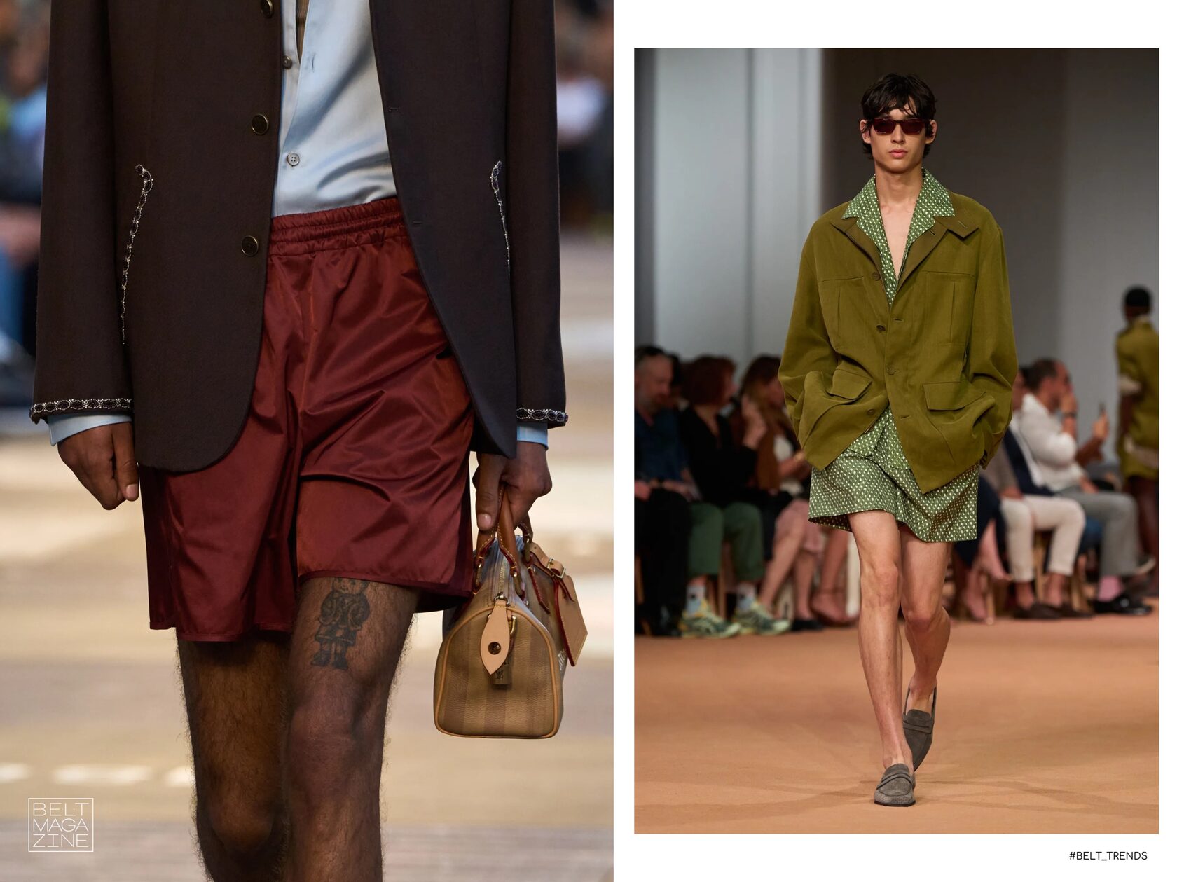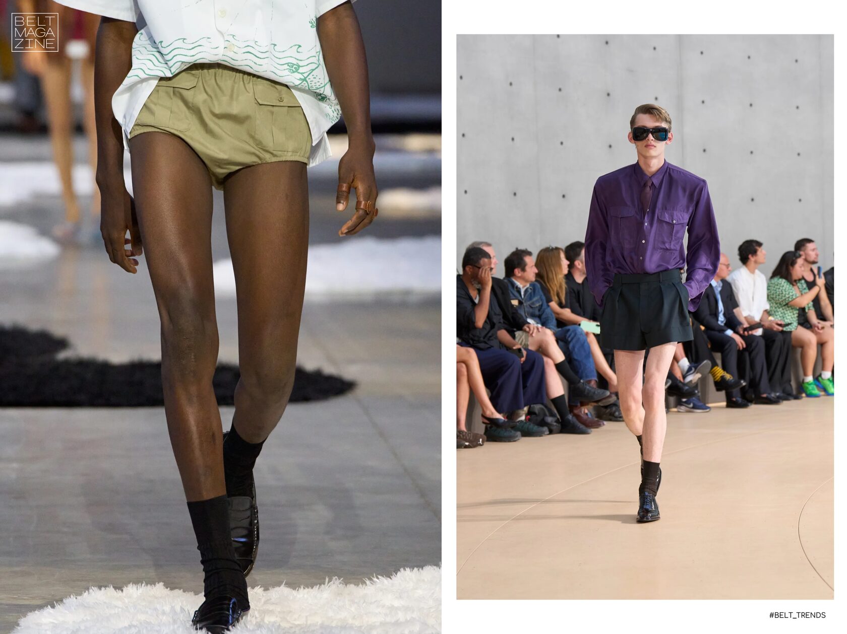Для совсем жаркого сезона мужчинам предлагают выбирать мини- и микро-шорты, как у Prada, Saint Laurent, LV. Все-таки эффект Пола Мескала, Педро Паскаля, Александра Скарсгарда и других селебрити, смело оголяющих свои ноги, нельзя отрицать.