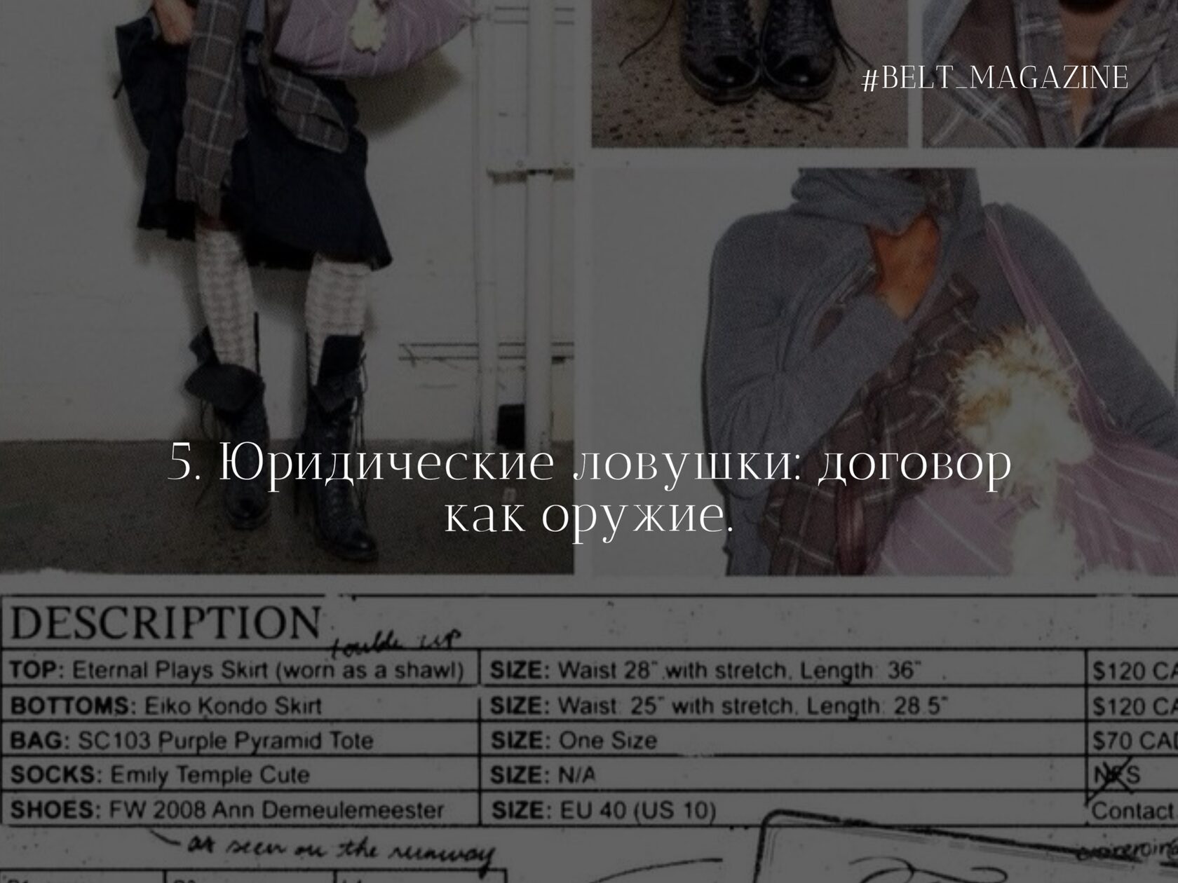 Мода — это не только глянец, творчество и показы. Для молодых дизайнеров, продюсеров, PR-специалистов и организаторов это еще и зона высоких рисков. Энтузиазм часто принимают за гарантию, а устные договоренности - за контракты. Редакция BELT MAGAZINE разобрала несколько реальных историй (включая одну из собственной практики и практики коллег) и составила гид по защите вашего интеллектуального труда и финансов.