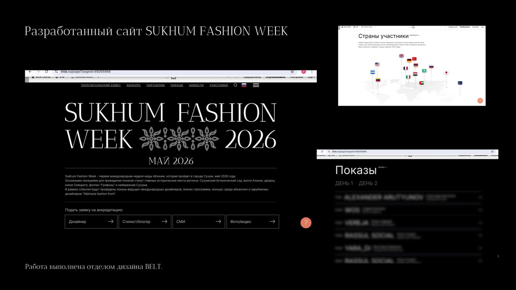 Проект презентовался Людмилой Полесковой, Дмитрием Кетия, Екатериной Обрубовой и Ириной Севериной как перспективное сотрудничество с «поддержкой на высшем уровне» и государственным финансированием. BELT пригласили как стратегического подрядчика: разработать креативную платформу и собрать событие под ключ.