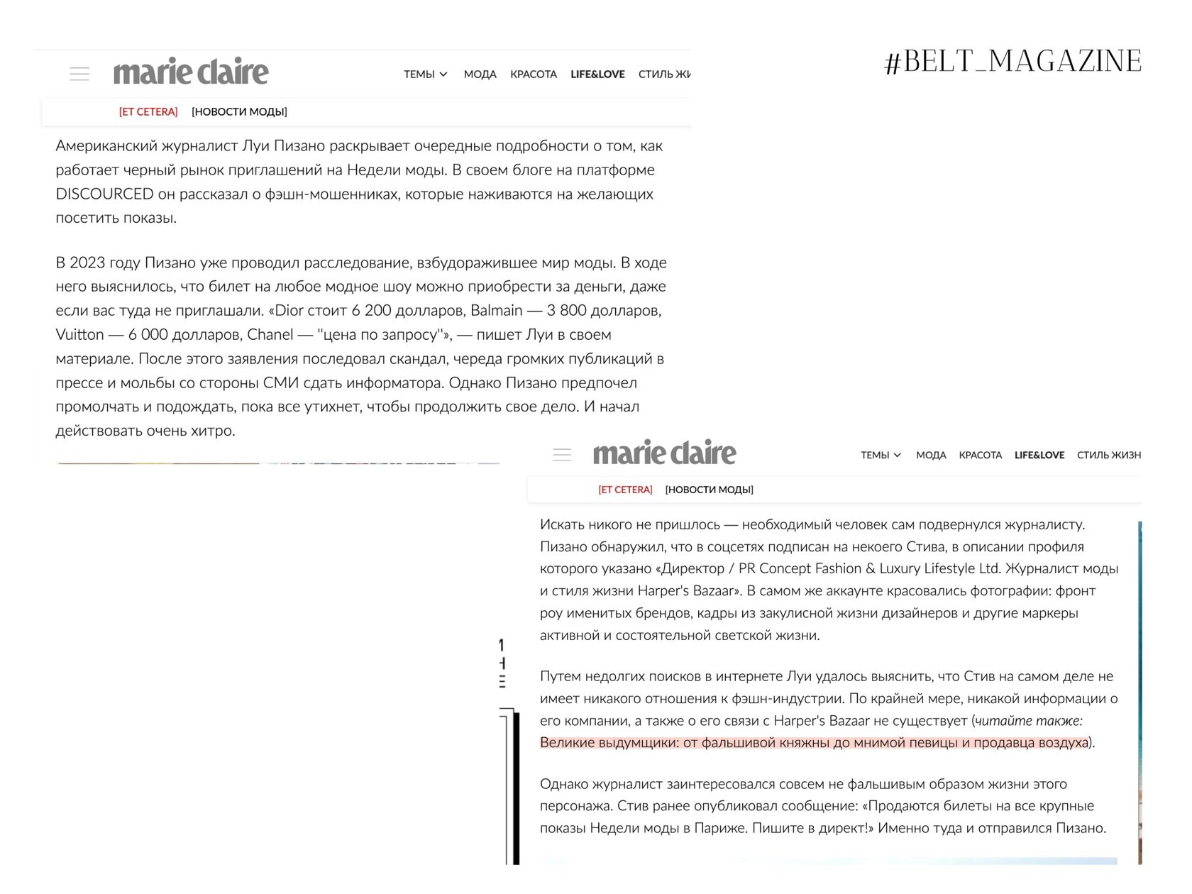 Как это было. Журналист Луи Пизано решил проверить рынок фальшивых приглашений на Недели моды. Он связался с неким «Стивом», который представлялся директором PR-агентства и редактором Harper‘s Bazaar.