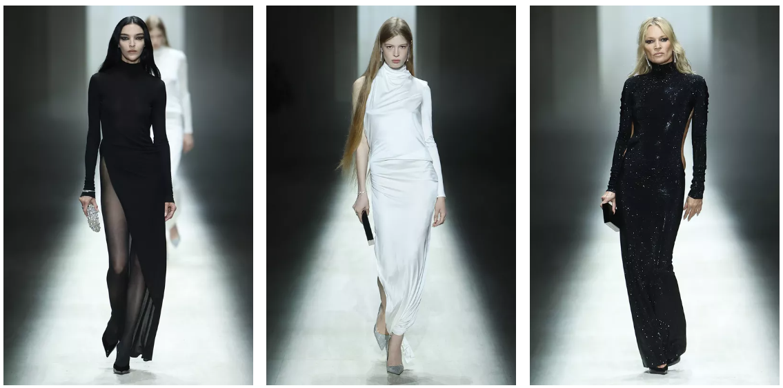 Палитра сезона оказалась монохромной и тёмной, где глубокий чёрный доминировал практически во всех коллекциях как визуальный ответ на глобальную неопределённость.