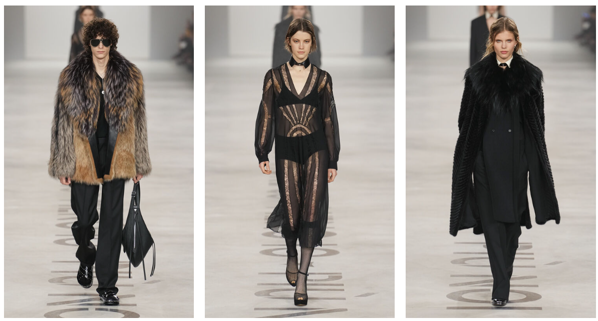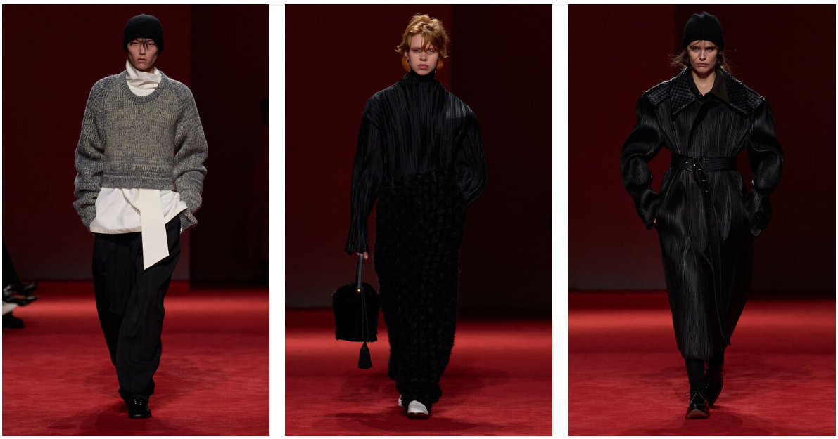 Другой сильный момент — Bottega Veneta, где коллекция стала диалогом между брутальными архитектурными силуэтами и более чувственными, мягкими формами одежды; здесь технические ткани, шелк и фактурный мех сочетались так, что каждый образ выглядел как арт-объект.