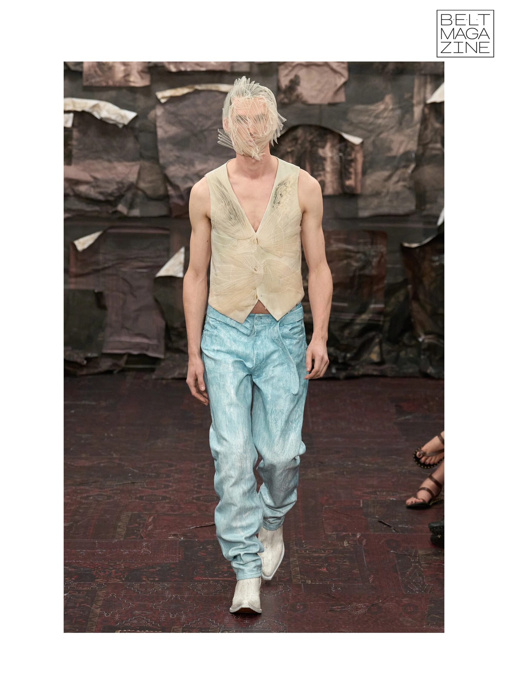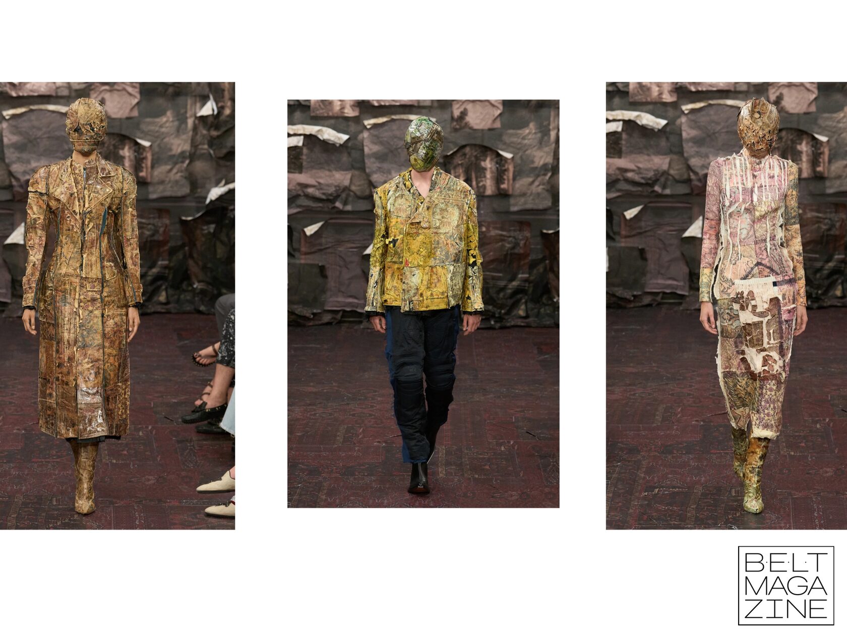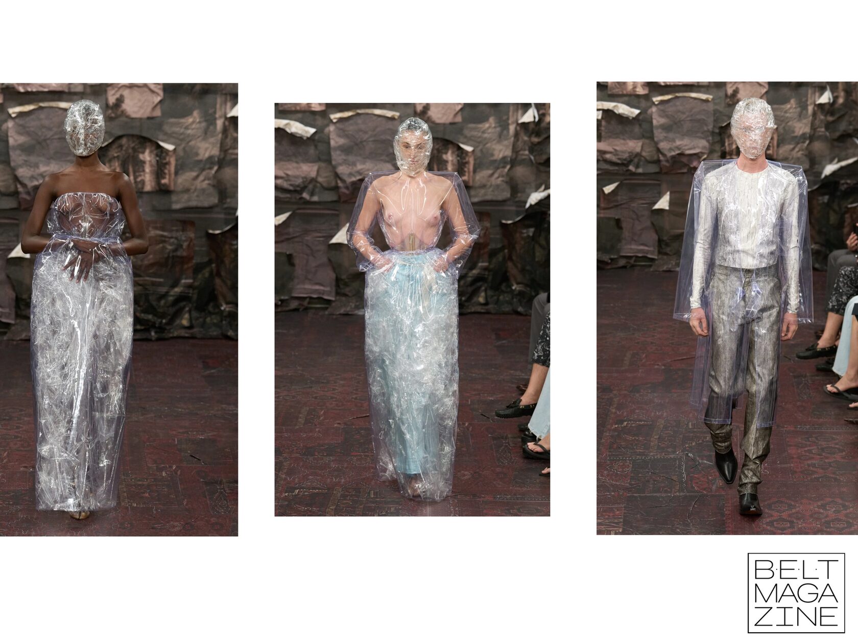 Впервые за долгие годы коллекция линии Artisanal возвращает зрителя к истокам модного дома. С первого выхода видно, что подход к созданию коллекции у Гленна Мартенса такой же, как и у Мартина Маржелы. Первые пластиковые выходы, по задумке Гленна, должны были имитировать одежду из дутого стекла, но в то же время отсылали к работам Мартина, в которых он превращал пластиковые чехлы для одежды, которые обычно используются в химчистках, в полноценные предметы одежды.