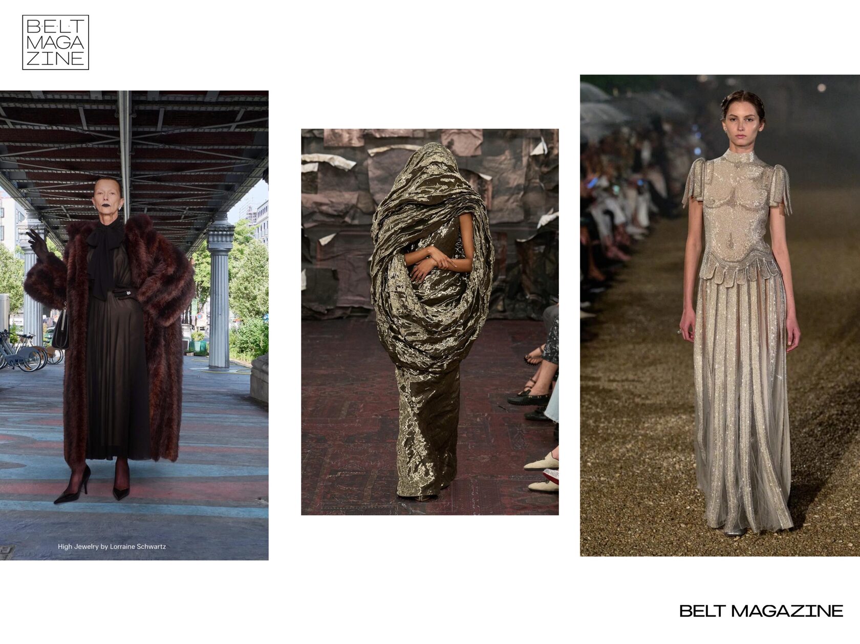 Визуально коллекции балансировали на грани романтизма и мрака: повсеместно присутствовали бархат, чёрный, серый, глубокие винные и изумрудные тона. Почти каждый показ отражал тревожность современности через эстетику: у Margiela — средневековые тени и готическая мрачность, у Schiaparelli — предвоенное напряжение, у Balenciaga — ощущение упадка буржуазии, а у Dior — тень над прошлым и новое прочтение старых кодов.