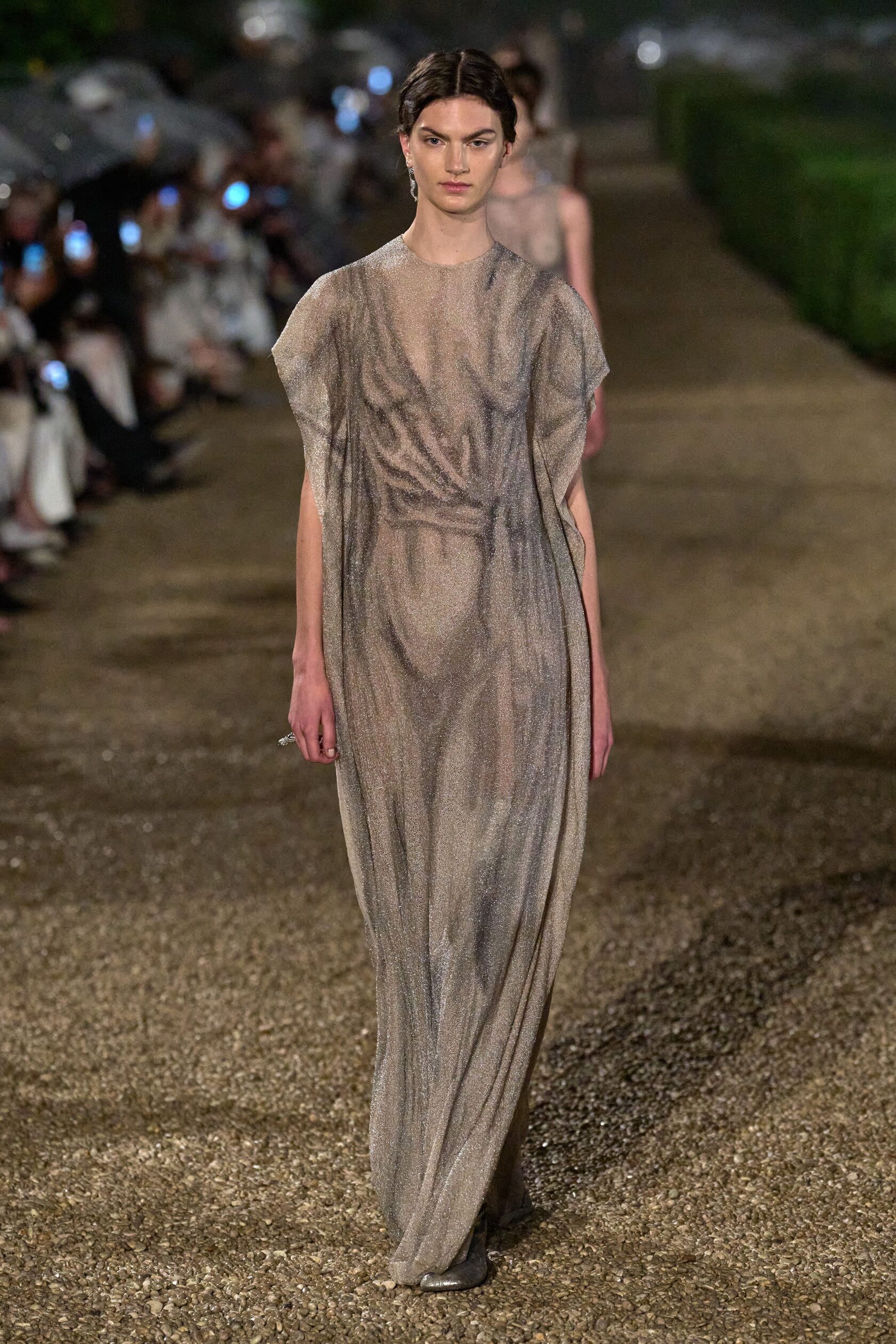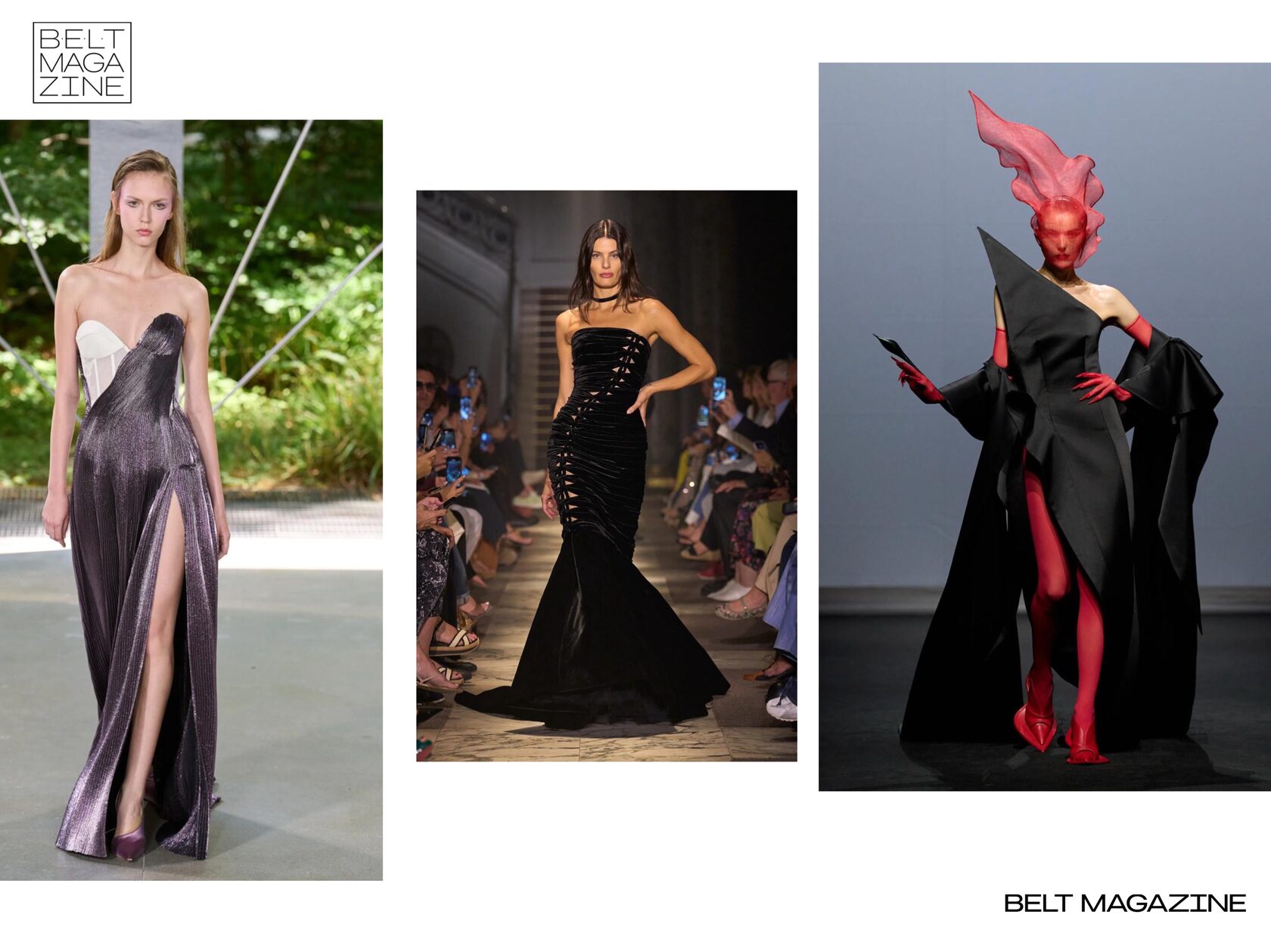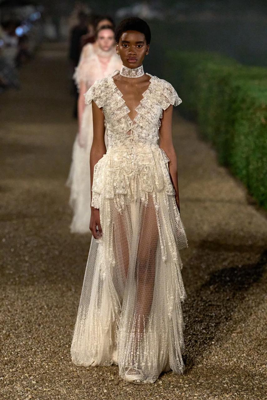 Женственность подаётся как сила — не хрупкая дива, а независимая, уверенная, интеллектуальная муза с характером. В Schiaparelli — образ музы, играющей на грани света и тьмы; у Balenciaga — прямая отсылка к женщинам-иконам, таким как Элизабет Тейлор; а в Dior — героиня, будто поднявшаяся из прошлого, но твёрдо идущая в будущее.