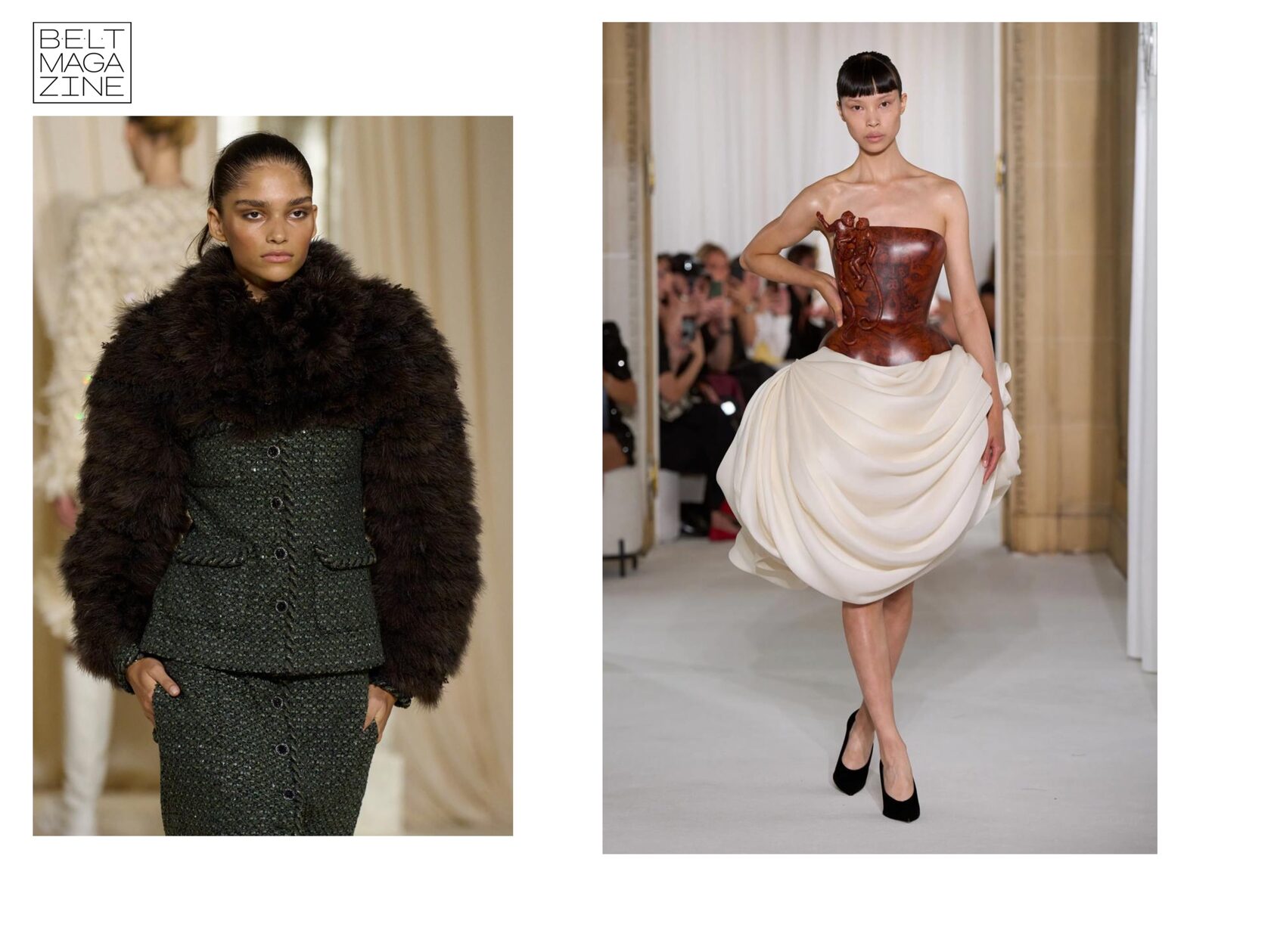 Если взглянуть на коллекции таких домов, как Chanel, Dior, Armani Privé, Schiaparelli, Balenciaga и Maison Margiela, можно выделить несколько ключевых общих черт: