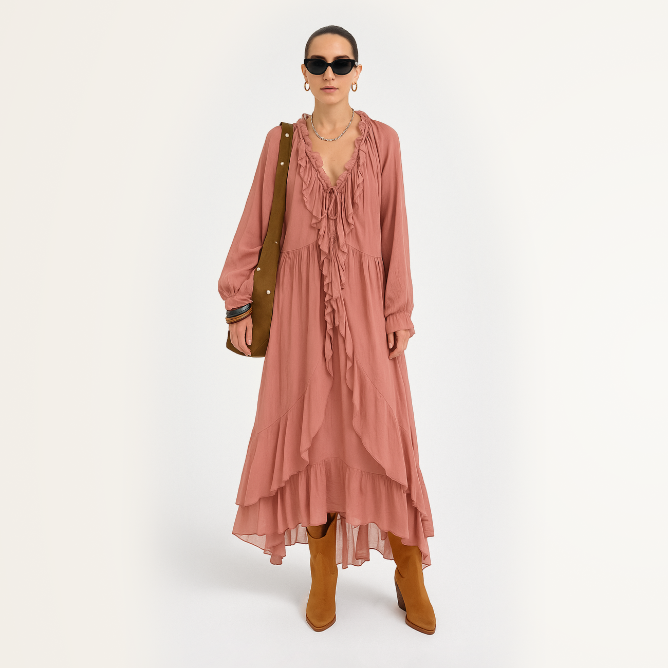 Свободный и многослойный крой – ключевая особенность бохо стиля. Широкие платья, просторные блузы, накидки и пончо создают силуэт, не сковывающий движения и подчеркивающий легкость и свободу.