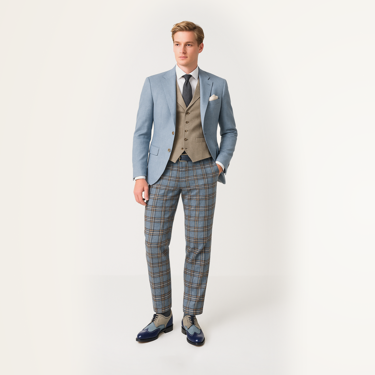 Одежда денди всегда отличается идеальной посадкой. Костюмы шьются по фигуре, создавая ощущение «второй кожи», и подчеркивают силуэт. Важны детали, такие как воротники, пуговицы и карманы, которые должны быть строгими и утонченными.