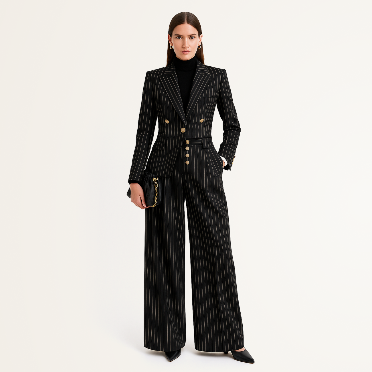 Часто используется клетка и полоска, особенно в костюмах и пальто. Важно, чтобы принты были сдержанными и гармонично сочетались друг с другом.