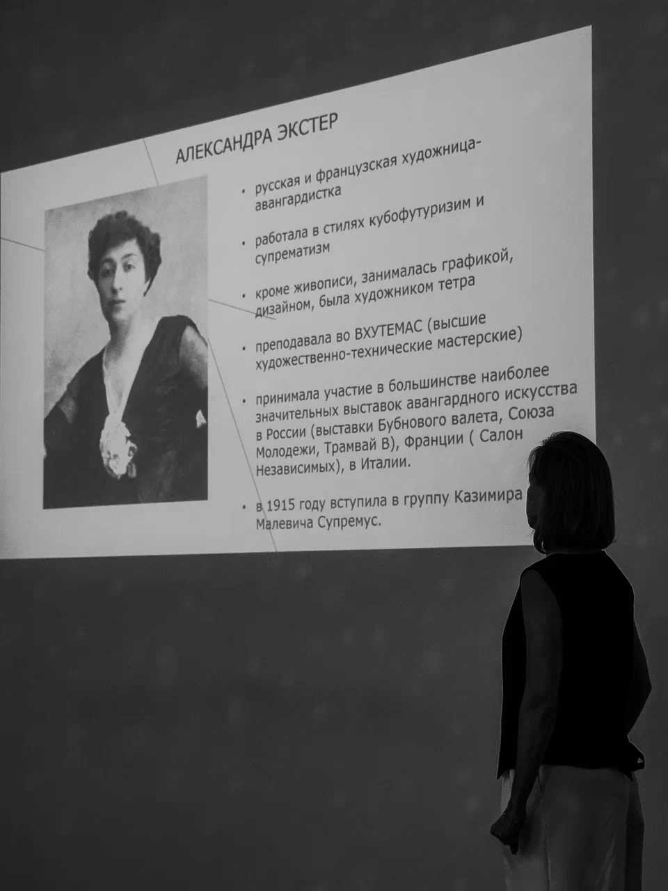 В рамках лекции искусствовед Наталья Сахарова погрузила гостей в атмосферу авангарда и истории. Гости узнали что такое авангард и почему его не воспроизвести детским рисунком; погрузились в советский конструктивизм через творчество Поповой и Степановой; познакомились с нормаль-одеждой Татлина и её сходством со стилем Стива Джобса и открыли для себя множество других интересных инсайтов о сплетении художников и моды.