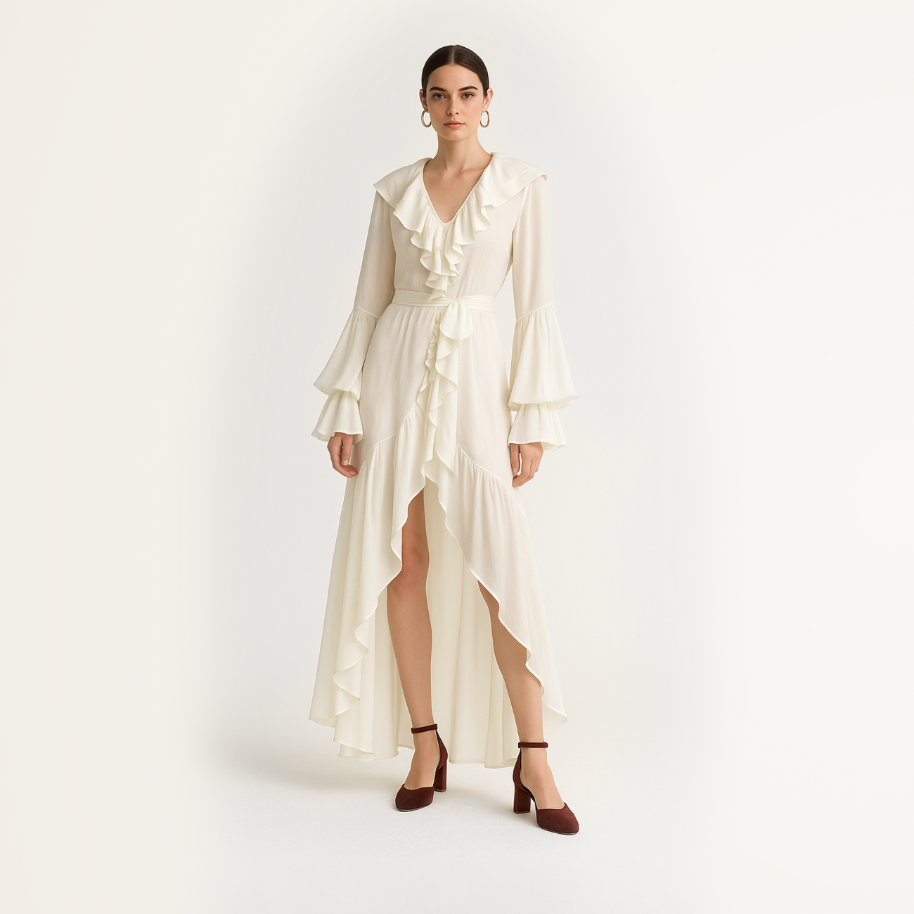 Современная мода продолжает интегрировать элементы романтического стиля, будь то воздушные ткани, оборки, или акцент на естественных линиях. В сегодняшнем варианте романтический стиль стал многогранным, благодаря его умению соединять историю и современность.
