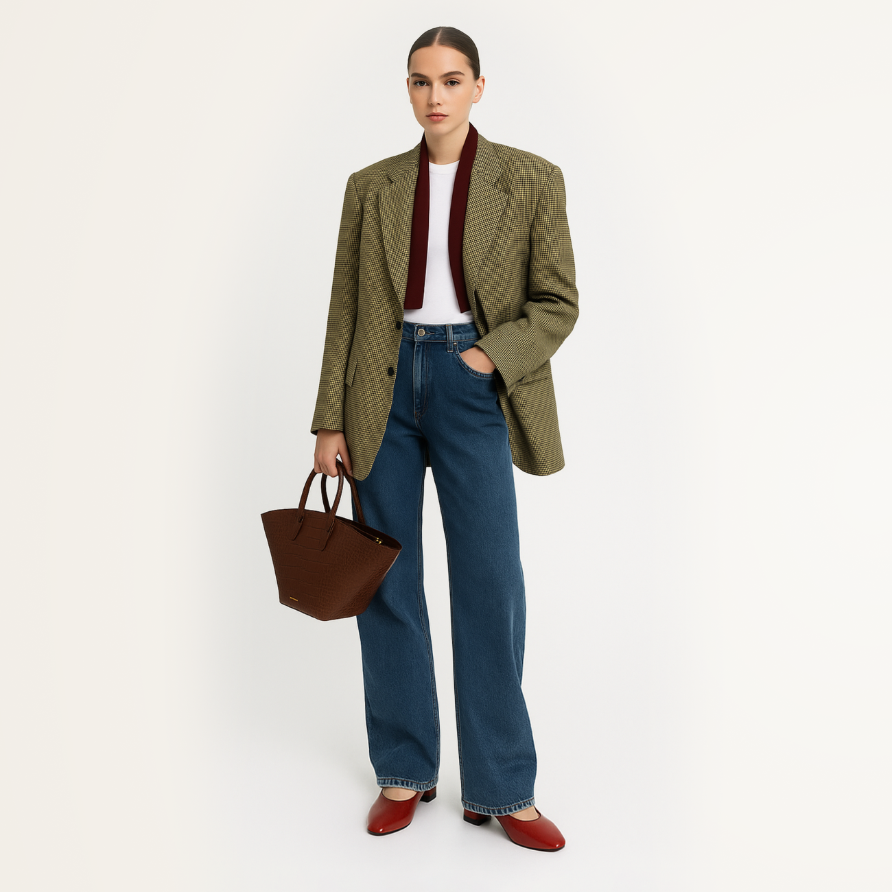 Стиль преимущественно монохромный, но допускает лаконичные принты. Клетка, полоска и легкие графичные узоры добавляют выразительности, не нарушая общей элегантности. Они поддерживают баланс между официальностью и комфортом.