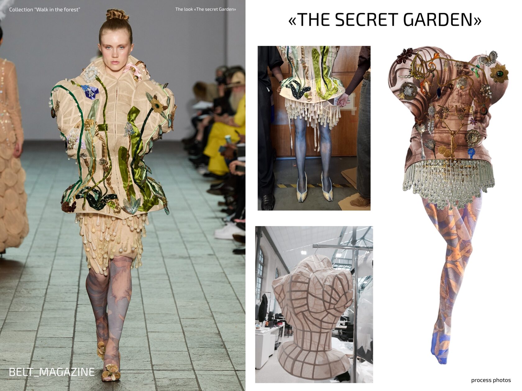 “The further you go into the collection, the deeper you immerse yourself in the forest: the first few looks illustrated its inhabitants — flora and fauna, but after that, the collection gradually shifts to your fears, such as the corpse and, in this case, the witch.”