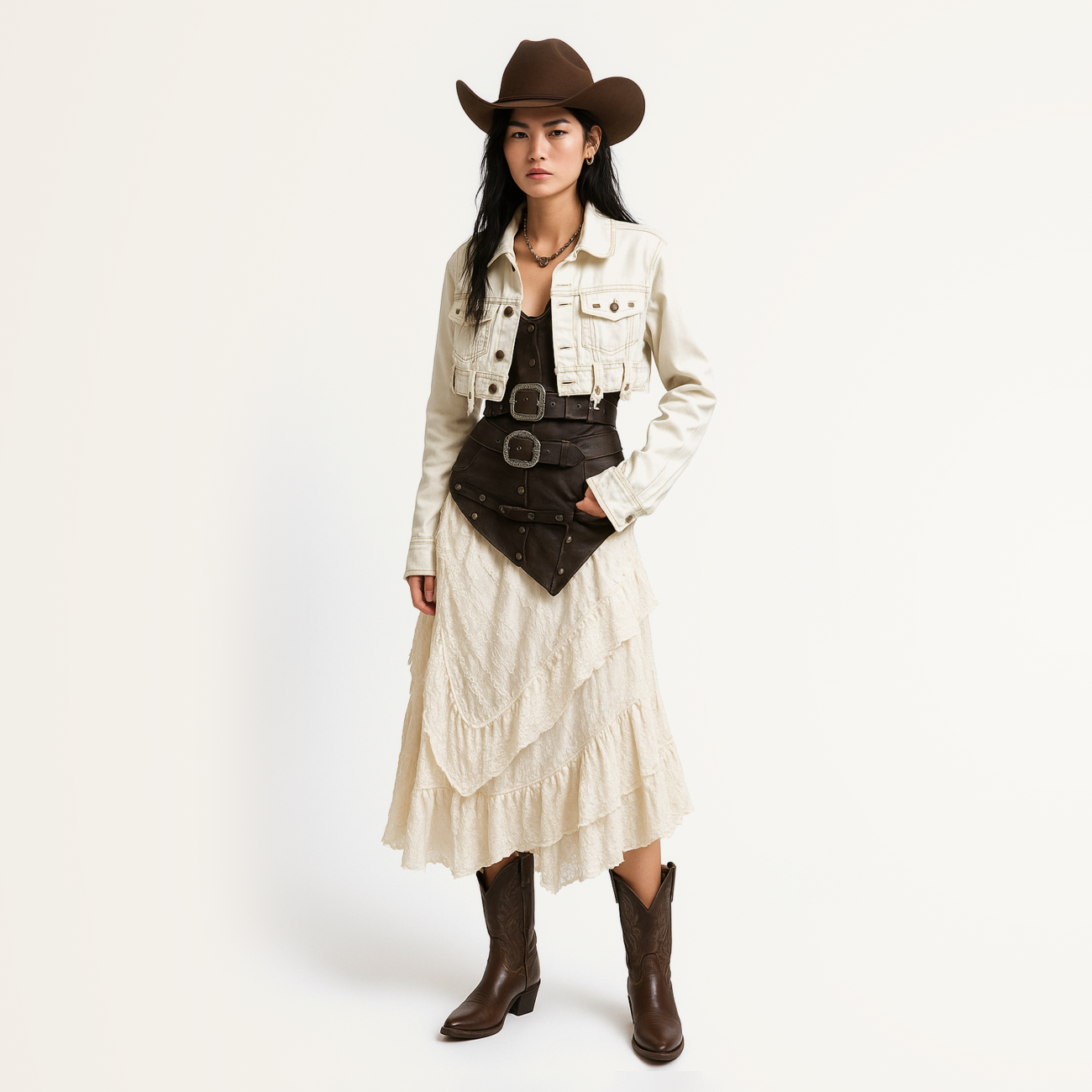Вестернкор — это стиль, который переносит нас в атмосферу Дикого Запада, где свобода, приключения и дух независимости становятся главными символами. Этот стиль — не просто мода, а философия свободолюбия, выражающая протест против ограничений и стремление к простоте, гармонии с природой и самовыражению. Вестернкор черпает вдохновение в кинематографе, ковбойской культуре и эстетике ранчо, соединяя утилитарность с романтикой.